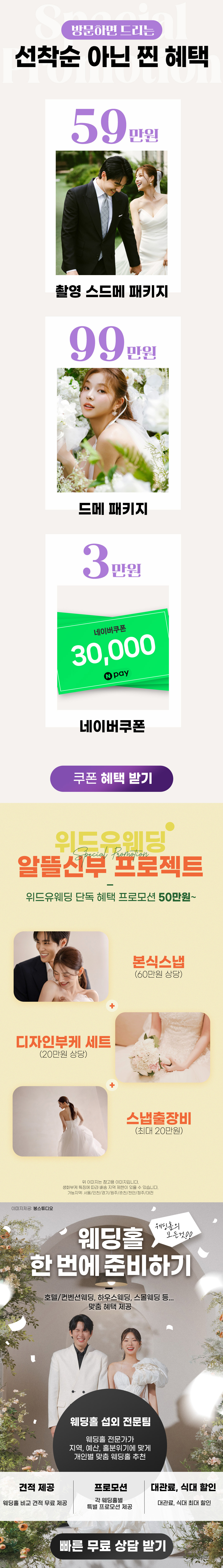 위드유웨딩 | 사업자번호 : 267-77-00492 주)더블유와이피코리아(WYP KOREA Co., Ltd.) | 사업자번호 : 662-88-02726 대표:유다연 | T.서울특별시 강남구 언주로125길 4, B동 L층 103호(논현동) COPYRIGHT 위드유웨딩. ALL RIGHTS RESERVED.